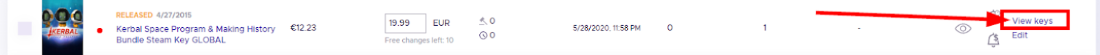 Locate the offer you want to update and click the ‘View keys’ button.