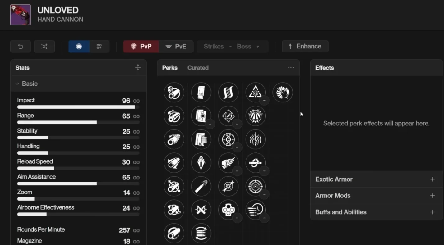 Unloved is a Strand hand cannon that fires heavy bursts. With perks like Dragonfly, Outlaw, and Paracausal Affinity, it rewards precision and fits well in Strand‑centric builds. I found its heavy‑burst archetype satisfying during my first clear of the dungeon, especially against orange‑bar enemies. Unloved drops in the first and final encounters.