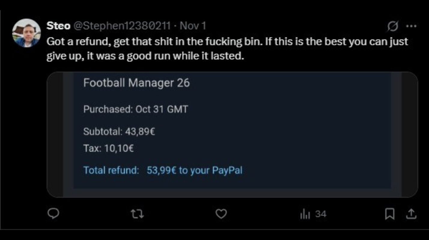 - Players have started refunding Football Manager 2026 ahead of release